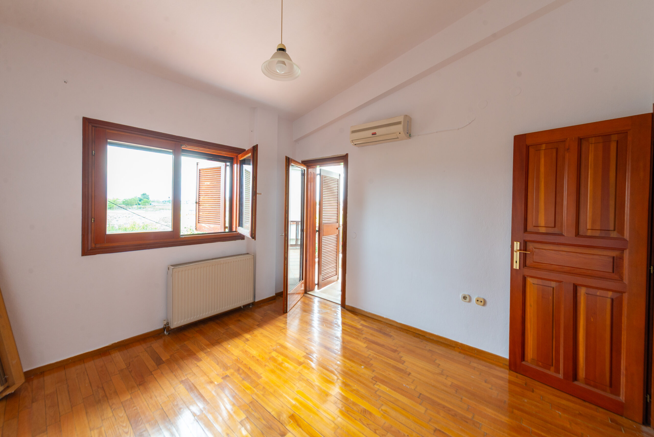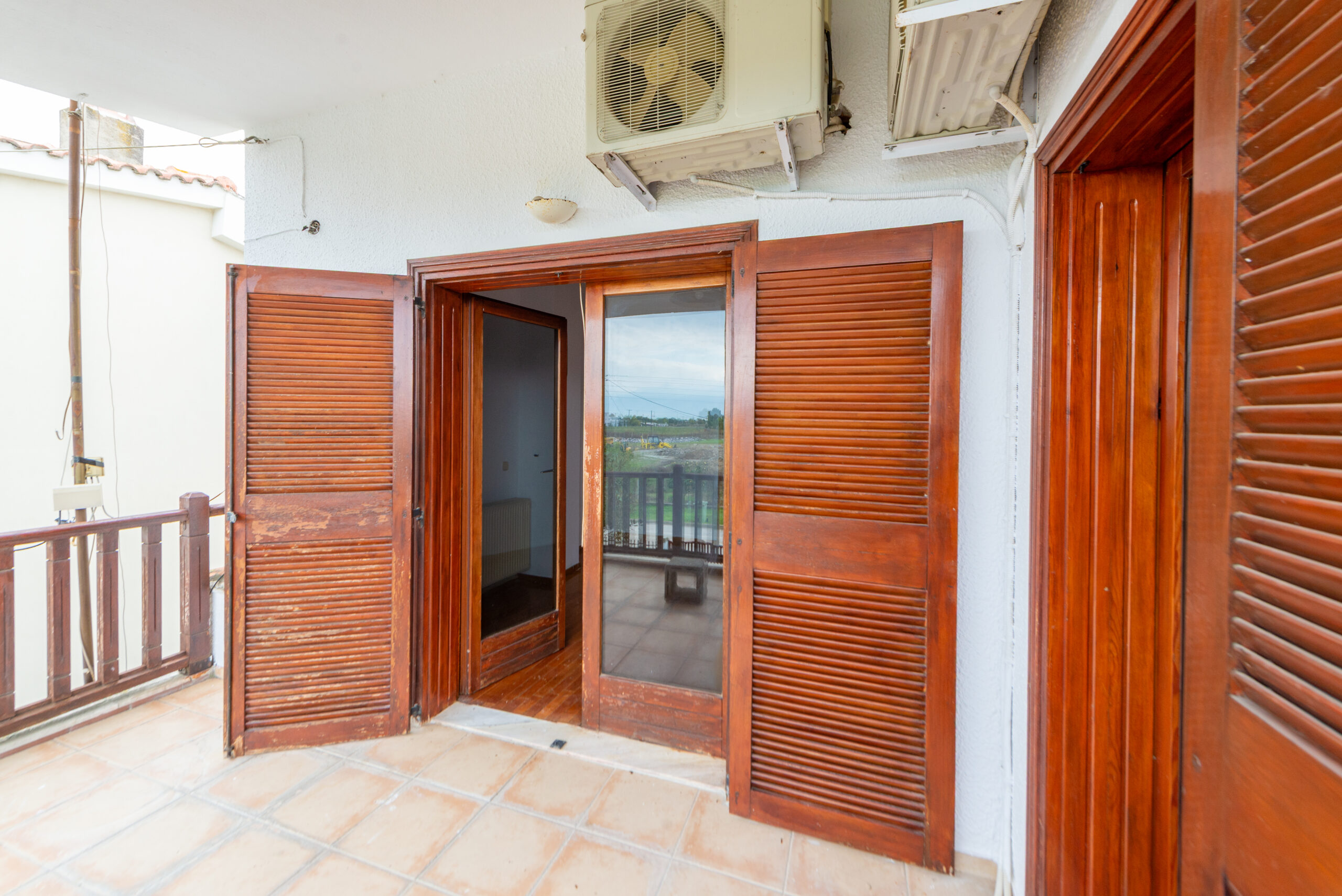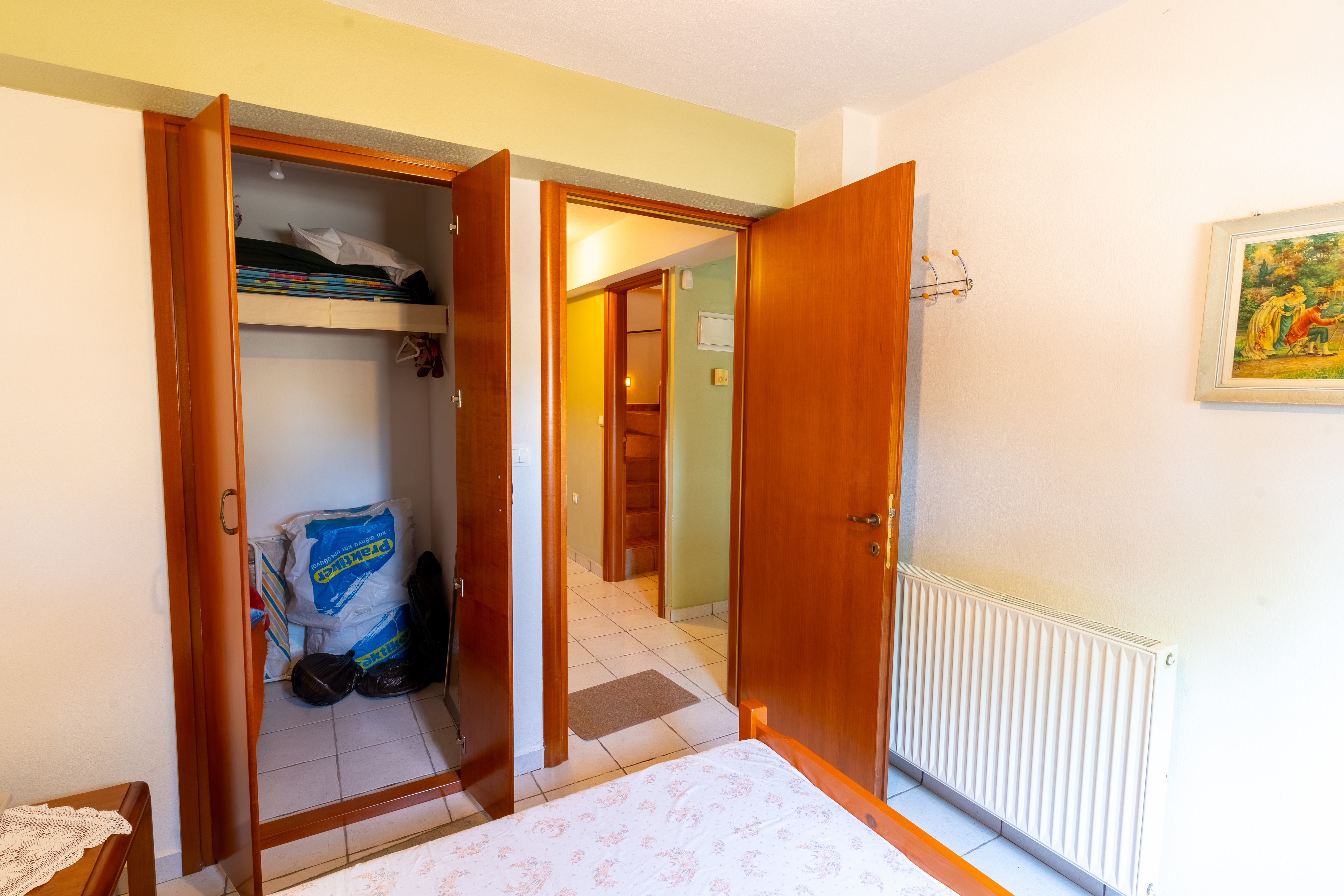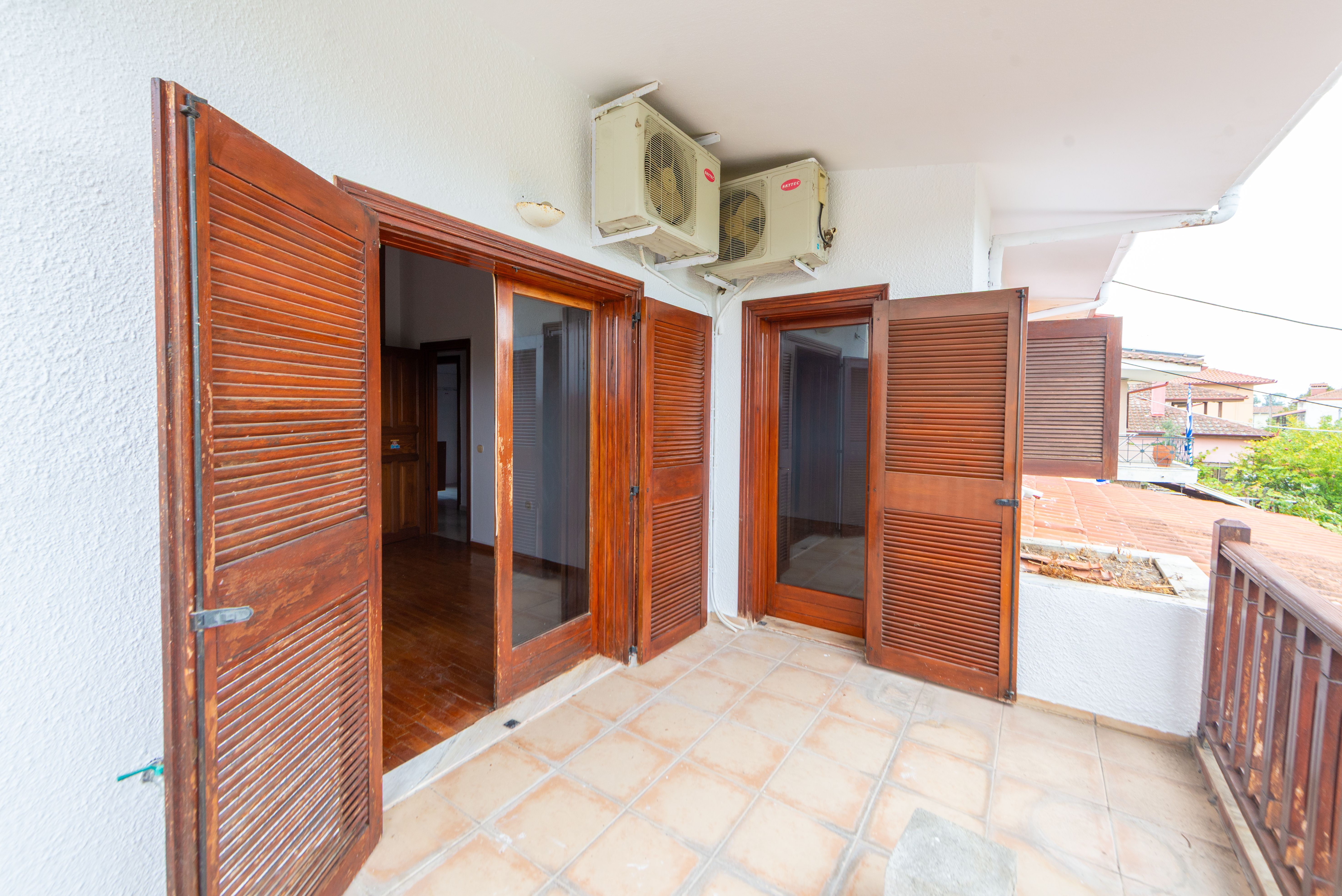 Drei komfortable Schlafzimmer, alle mit Einbauschränken und Zugang zu Balkonen vorne und hinten. Großer Balkon mit schönem Blick auf den Olymp. Badezimmer. Die beiden Ebenen sind über eine hochwertige Holzinnentreppe miteinander verbunden.