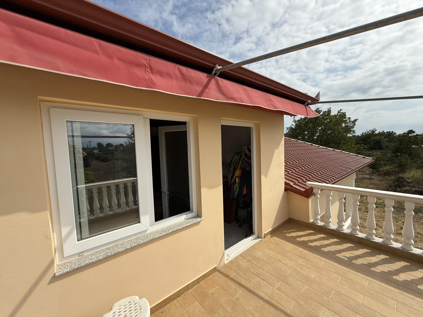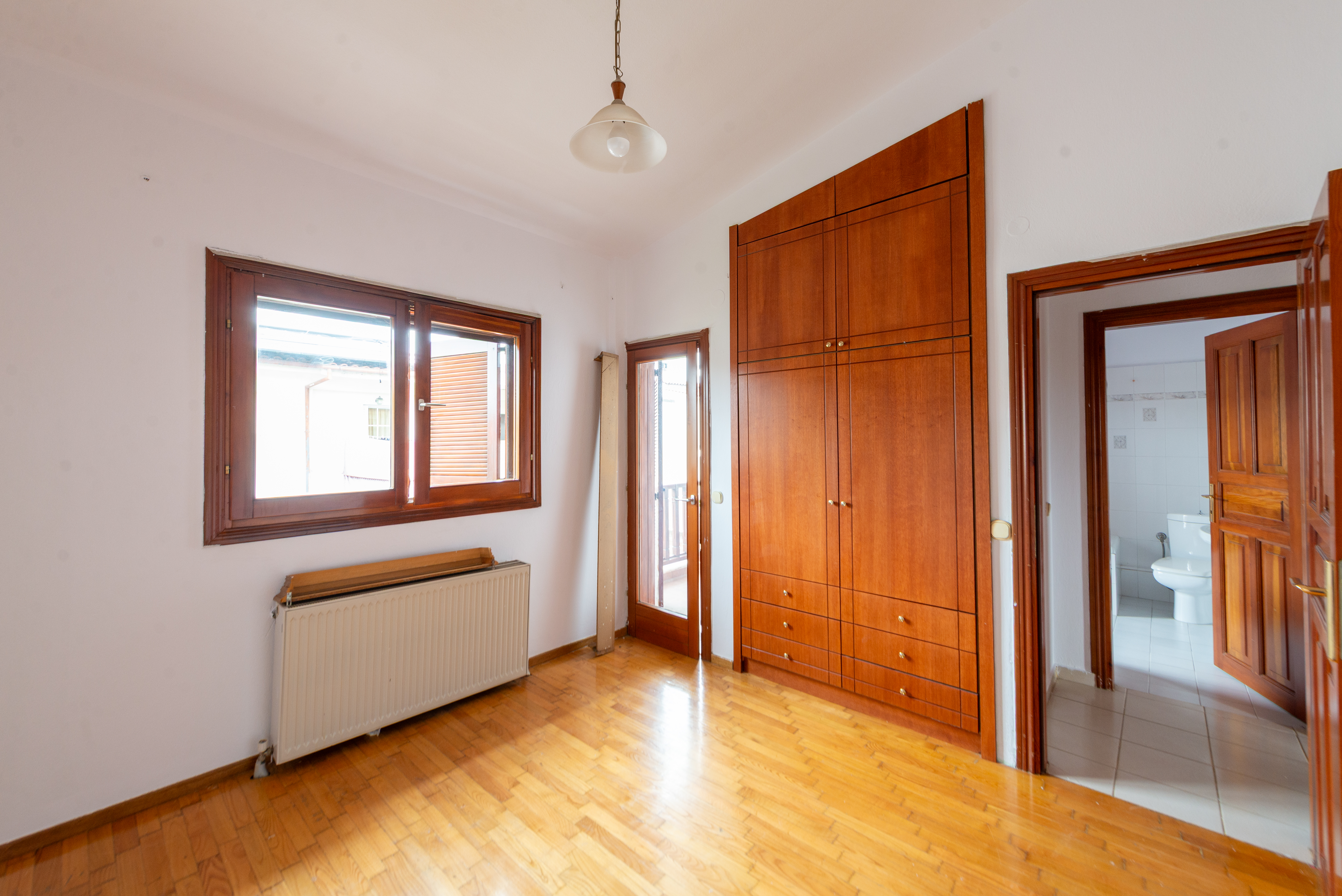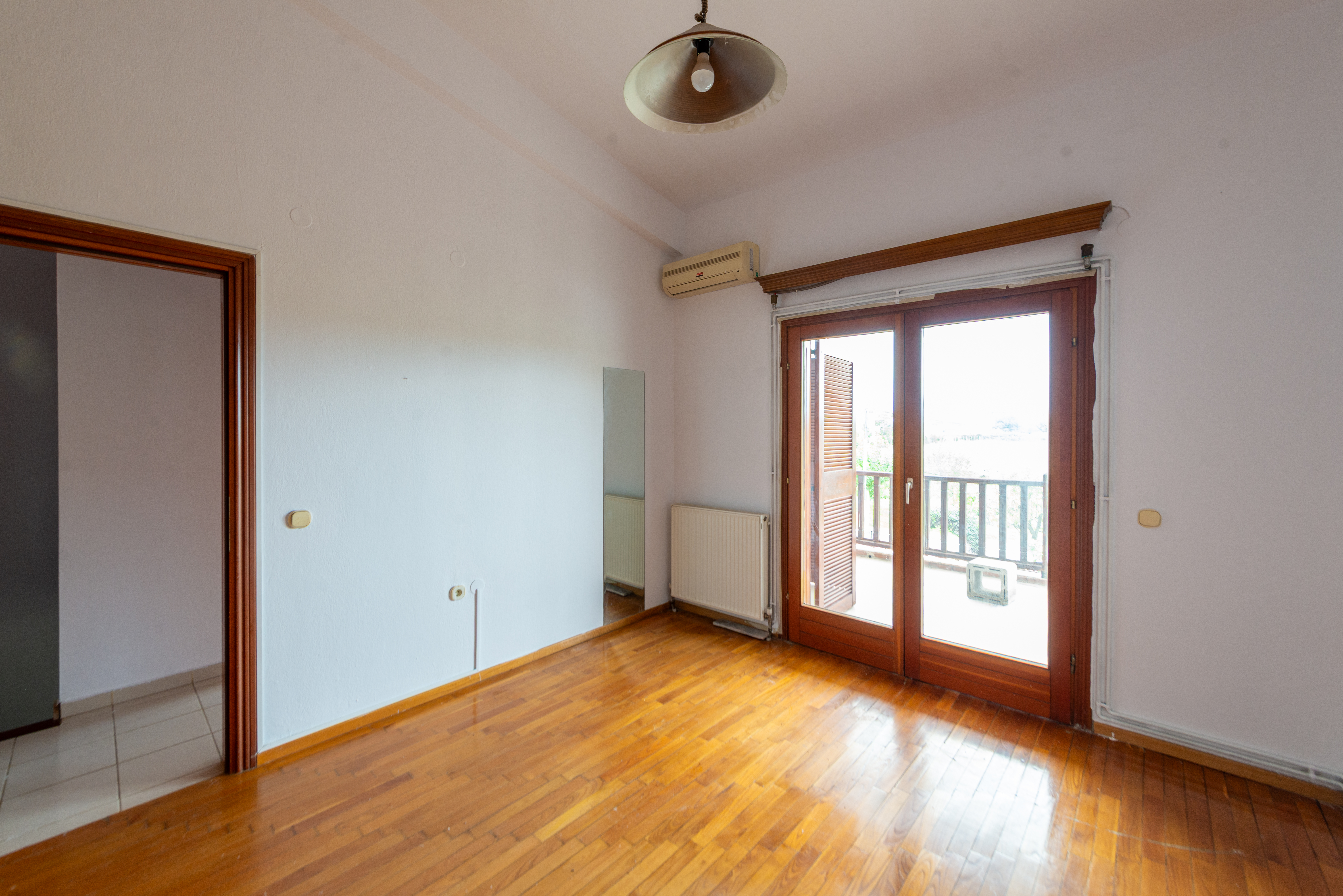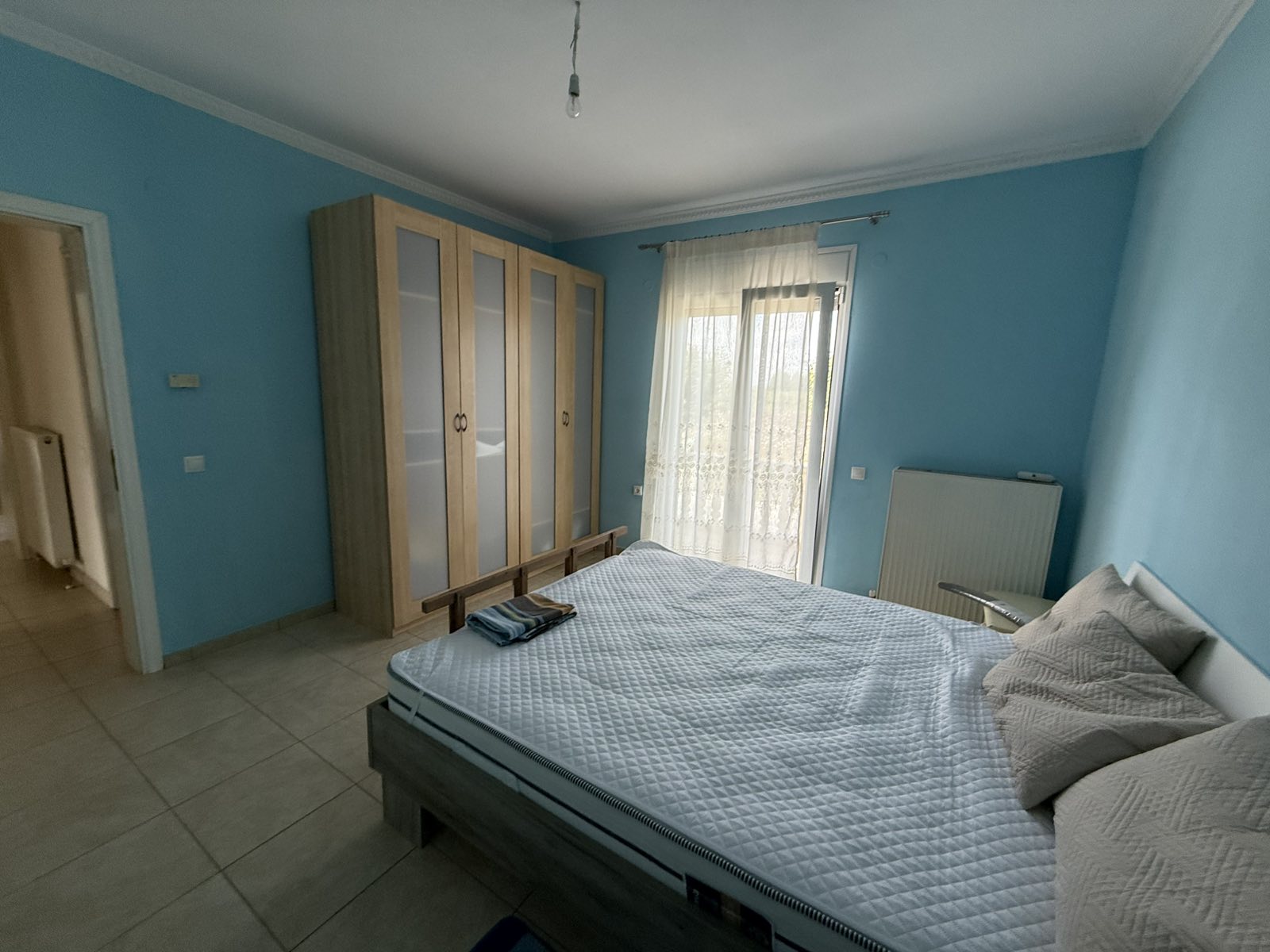 Drei komfortable Schlafzimmer, alle mit Einbauschränken und Zugang zu Balkonen vorne und hinten. Großer Balkon mit schönem Blick auf den Olymp. Badezimmer. Die beiden Ebenen sind über eine hochwertige Holzinnentreppe miteinander verbunden.